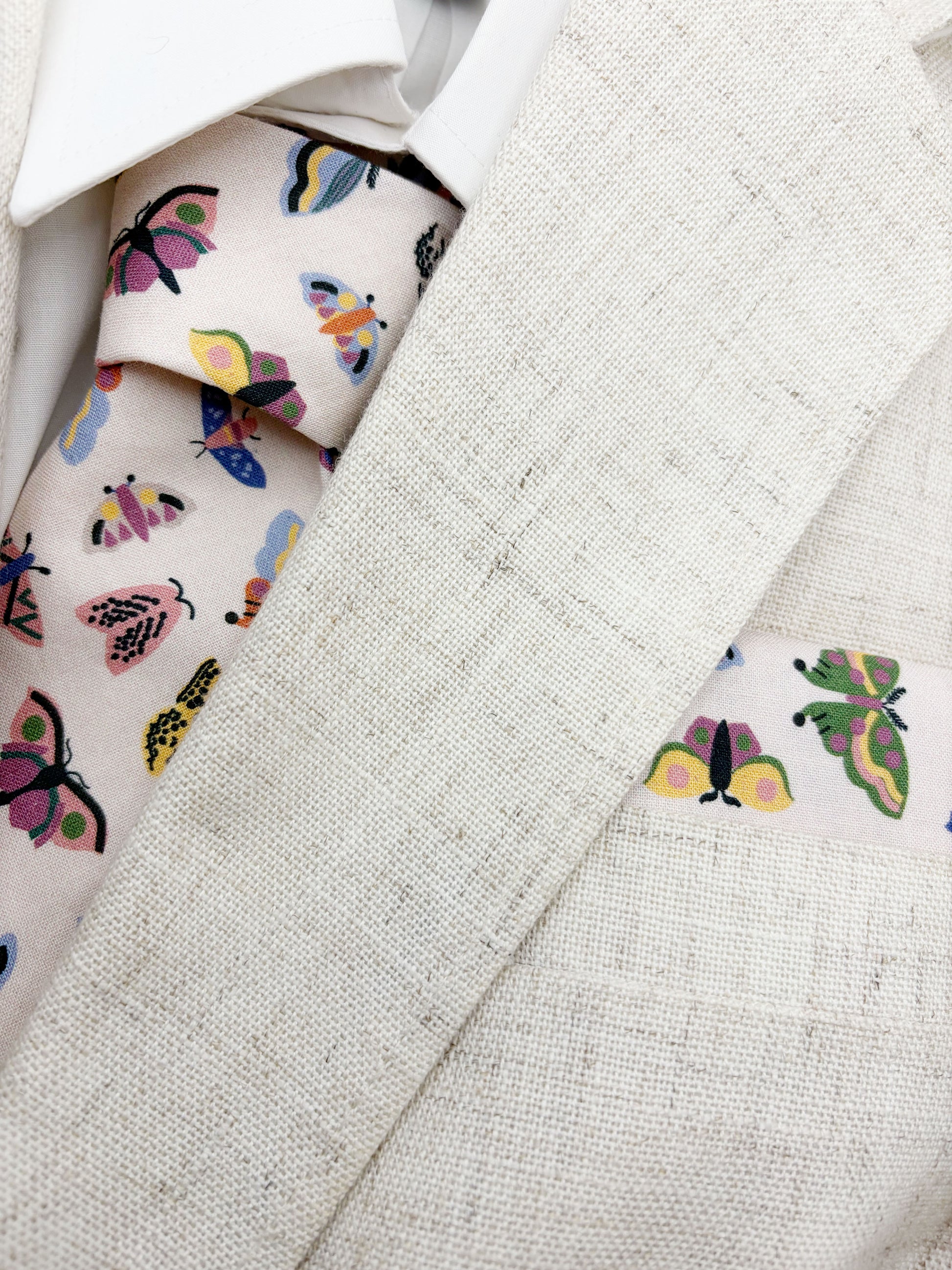 I assemble my neckties on a sewing machine before stitching the rest by hand. I personally make each and every necktie myself with extra care and attention.